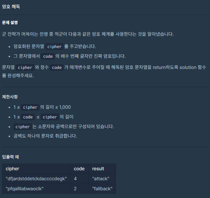 프로그래머스 알고리즘 문제풀이 - 자바스크립트 [ 암호해독 ]