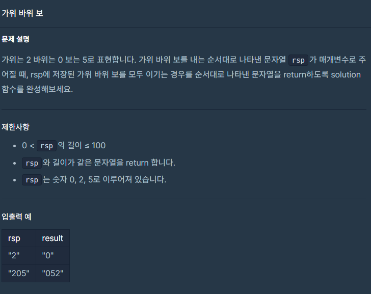 프로그래머스 알고리즘 문제풀이 - 자바스크립트 [ 가위바위보 ]