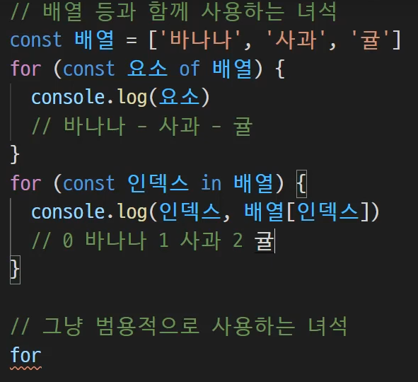 array.forEach() 반환값이 없는 것이 특징이다. 각각 배열안의 모든 요소를 실행한다. 새로운 배열에 할당하는 것이 아니기 때문에 원본 훼손의 문제로 map을 사용하는게 추세가 아닐까라고 개인적으로 생각한다. 사실 둘의 차이를 잘 모르겠다. numbers.forEach(num => console.log(num)) array.map() 각 요소를 모두 맵핑하고, 새로운 배열을 만들어낸다. const triple = numbers.map(num => num%2) console.log(triple) array.filter() filter()함수 안에 있는 함수를 통과(true)하는 요소만 새로운 배열에 반환한다. const doubleNumber = numbers.filter(num=>num%2) c..